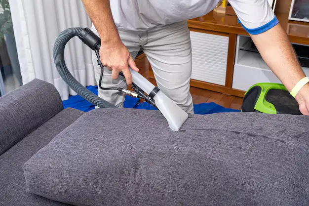 After pre-treatment, they begin the deep cleaning that involves the use of steam or hot water. We use specialised equipment along with fabric-friendly products for thorough cleaning. This ensures that your upholstery fabric doesn’t get damaged. The fabric is gently agitated to loosen embedded grime and stubborn dirt. Then: